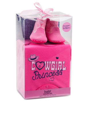 Pink Cowgirl Princess Bodysuit Box Gift Set a 0-6 Mos.