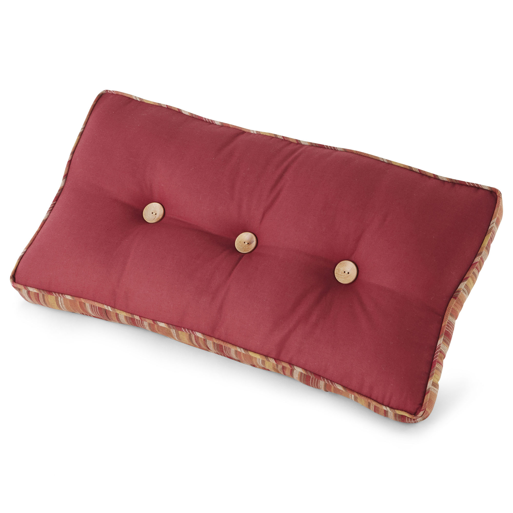 tufted sold-colored pillow striped gusset and 3 wood buttons measures 24x12" Cotton with polyester fill
