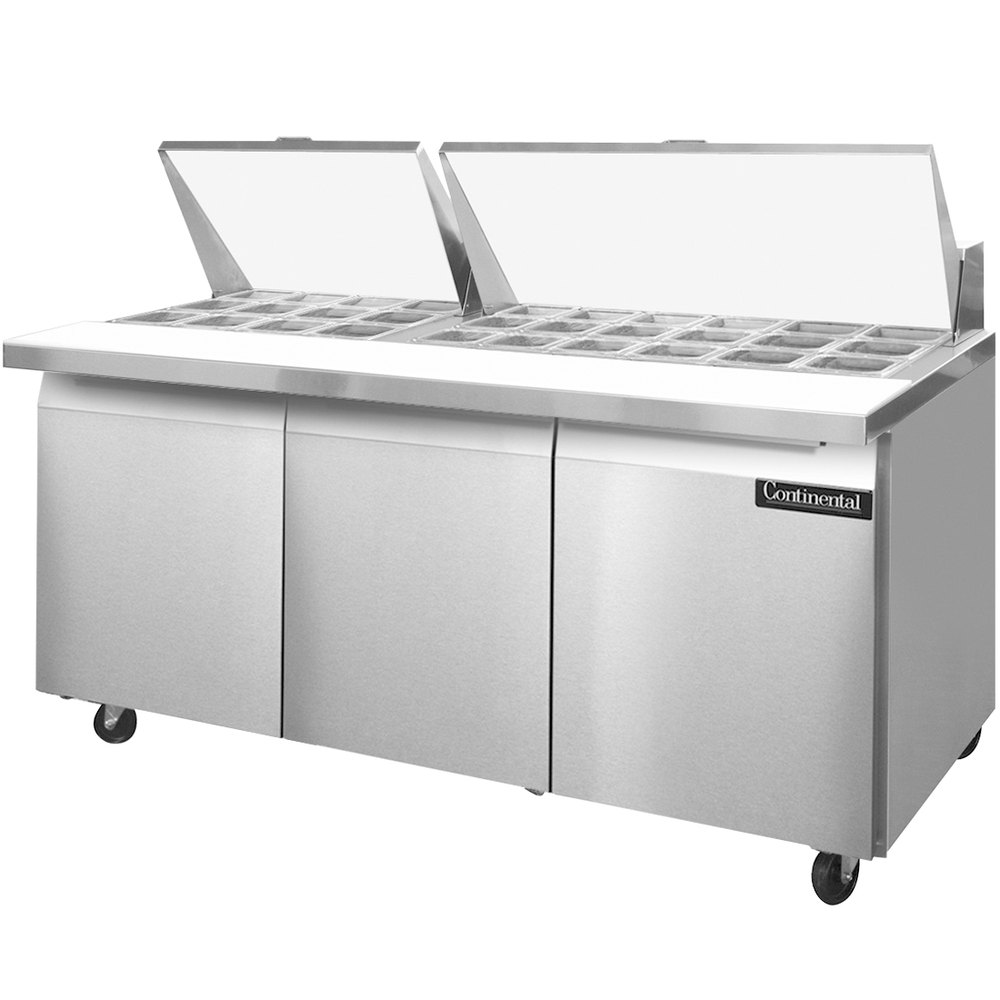 Deals Continental Refrigerator SW72-30M 72 Mighty Top Sandwich Prep Refrigerator with Three Solid Doors Special Offer