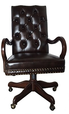 Eastern Legends upholstery genuine leather office chair Base Finish: Brown Minimum Overall Height - Top to Bottom: 32.25