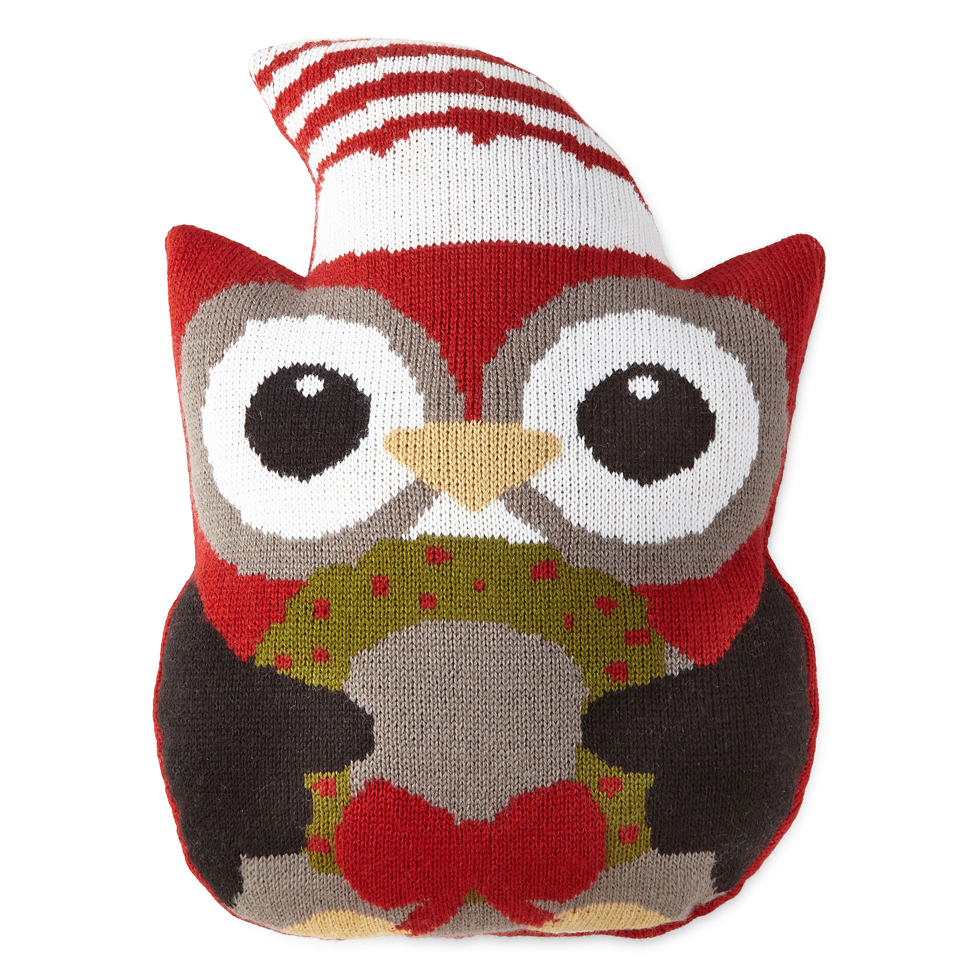 North Pole Trading Co. Shaped Owl With Hat & Wreath Decorative Pillow
